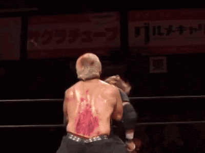 The quacking Humpty Dumpty duo returns. Last time we saw the Lynch Brothers, they gave us a very special Kimura bloody brawl featuring the very first instance of someone bleeding more than Kimura himself. Well, here they are once again, and they're game for another big Kimura bloody brawl, albeit one that's way more in line with the usual expectations. This match actually has one of Kimura's grosser bladejobs, as he spends the entire last half of the match with blood all over his head, arms, and torso. The Brothers Lynch are strong in control with their usual bizarre offense, complete with Danny Lynch throwing reach-around tummy punches and Butcher Lynch basically running across the ring to land uppercuts. They're great on defense too, bumping like lunatics around the ring for Kusatsu and Kimura, and Danny Lynch cranks it up even farther during Kimura's big comeback as he starts hitting backflips on every Kimura punch. It's selling that goes beyond the point of parody, but I love it very much. Certainly not one of the best tags from this era or matches from this genre, but a fun little time that makes me happy we have more Lynch Brothers footage.